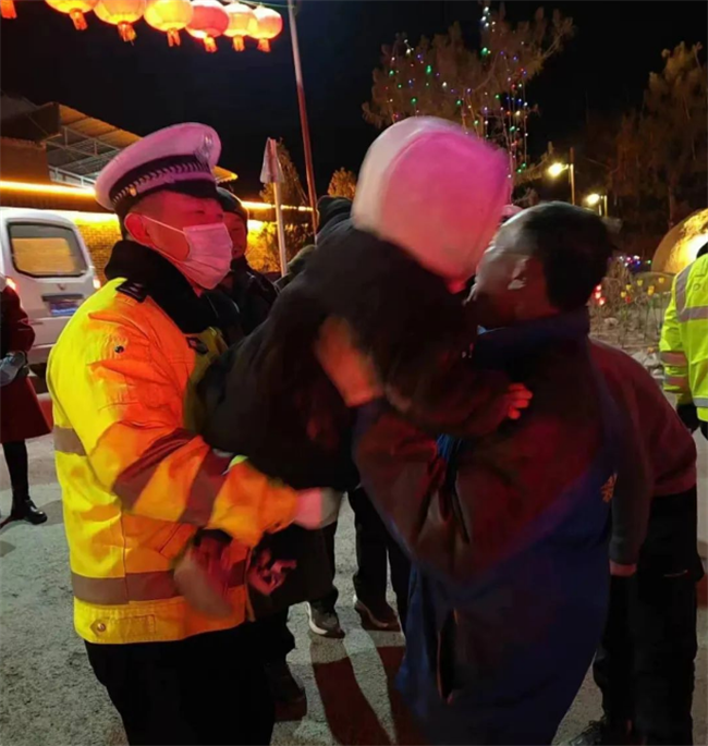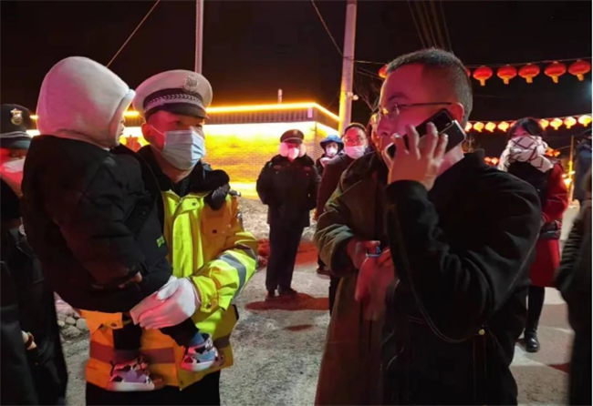 当天20时许,活动现场人流如织,民警在指挥疏导交通时,发现一名男孩四处张望,仿佛在寻找着什么人,疑似走失,见到此情此景,民警立即上前询问情况并将孩子抱在怀中,由于小男孩年龄小,表达不清楚,说不出有效的信息。中队长李忠祥一边通过对讲机让各岗点执勤民警留意是否有家长在寻找孩子,一边发动民警通过在微信朋友圈发布信息寻找。经过多方努力,最终联系上了正心急如焚寻找孩子的家长,确定孩子家人所在位置后,民警立即将孩子安全送到家人身边。家长看到孩子被平安的带回后眼泪不由自主地掉了下来,向民警同志连连道谢,并深深的鞠了一躬。