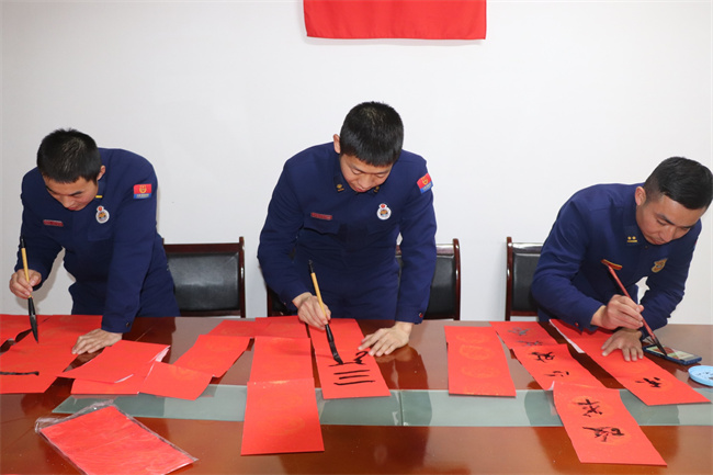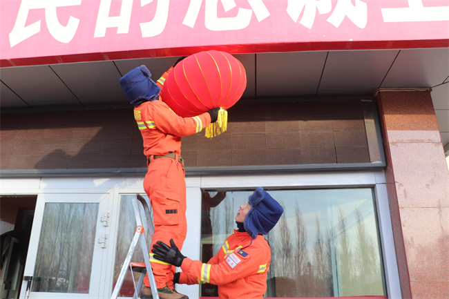 年味,是从一点一滴的布置开始的。大家一起挂灯笼、贴对联,正在认真整理灯笼的扎西罗卜是四级消防士,这是他在队里过的第三个春节。大队本着不铺张浪费的原则,营区内灯笼挂起来、彩旗飘起来、春联贴起来,浓厚的“年味”使队员即使在大队也能感受到"家"的温馨。扎西罗卜兴奋地说:“营区在大家的精心装饰下变得十分漂亮,远远望去就像是一幅靓丽的画卷,给新春佳节增添了喜庆的色彩”。