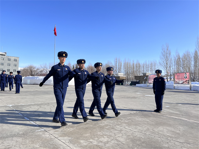 本网讯:(蔺文杰)为进一步强化大队全体队员队列意识,提升队伍整体精神面貌,促进队伍正规化建设向上向好发展。近日,阿勒泰地区森林消防支队阿勒泰大队以条令学习月为契机扎实开展队列训练。