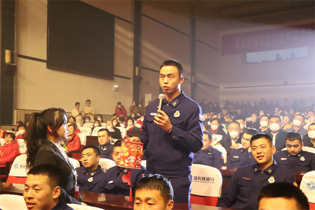 室外热闹非凡,室内也是祥和一片。社火表演结束后,社区党员干部邀请大家一起猜灯谜、看晚会。光与影交织谱写旋律,声与乐同频共鸣凯歌。晚会现场异彩纷呈、高潮迭起,掌声、欢笑声在会场不断响起,消防救援人员同人民群众欢聚一堂,尽情释放激情,享受着节日里的快乐。一场联欢晚会,唱出了欢快的心声,跳出了青春的活力,演出了深厚的情谊。