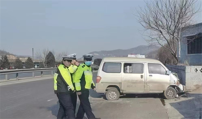 本网讯:(杨婷)2023年2月6日10时许,蒲县公安局交警大队黑龙关中队接到警情,一辆面包车在蒲县黑龙关辖区内发生交通事故,驾驶人与乘坐人两人受伤,民警立即到达现场。