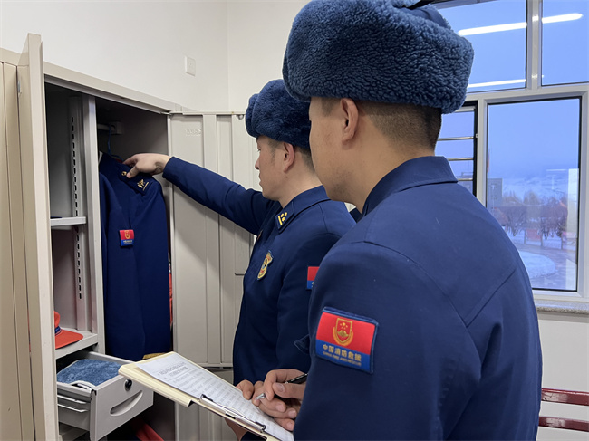本网讯:(蔺文杰)为进一步加强队伍正规化建设,不断提高大队内务卫生标准,努力建造干净舒适、健康和谐的工作环境,建立正规的生活秩序。近日,阿勒泰地区森林消防支队阿勒泰大队以条令学习月为契机,开展内务卫生大检查。
