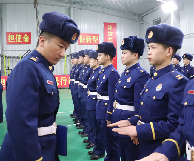 本网讯:(孟庆闯 杨志武)为进一步正规“四个秩序”,加强指战员的纪律作风养成,树立良好的形象,不断凝聚和提高队伍的战斗力,塑造优良的作风形象,2月6日,巩留县森林消防大队三中队扎实开展队容风纪检查,规范着装,检查仪容仪表。