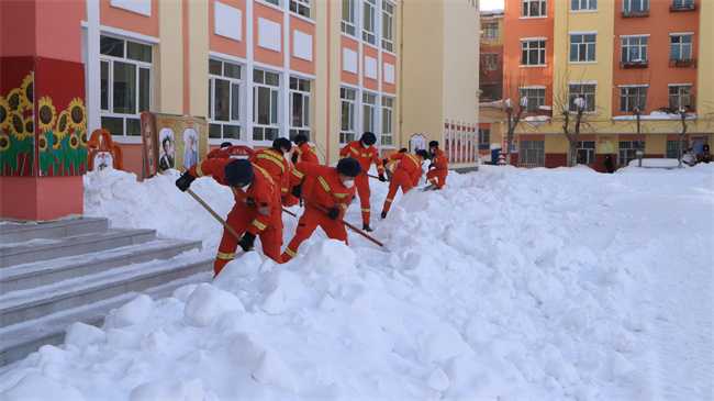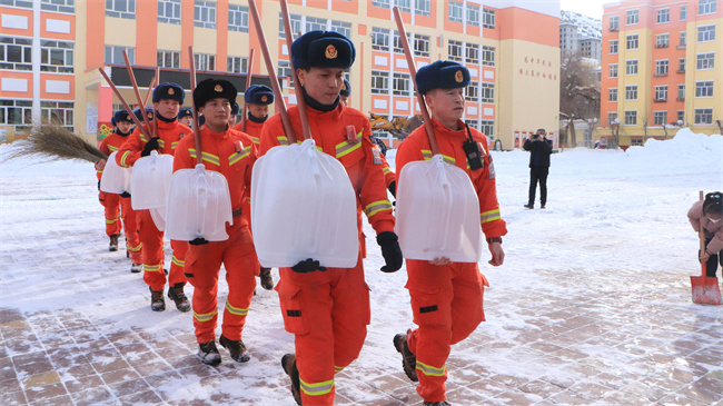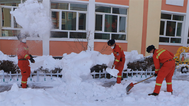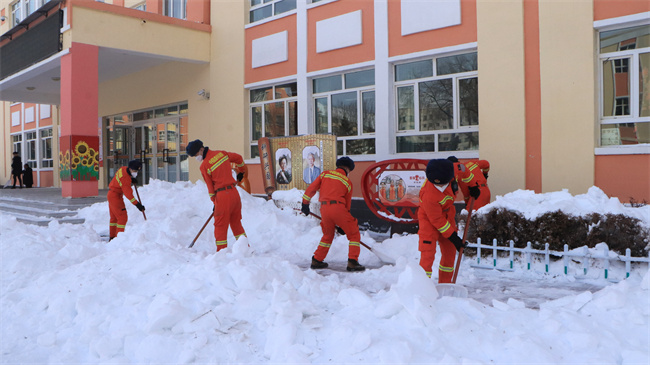 本网讯:(安宝)新疆阿勒泰地区伴随着几场强降雪过后,大雪把校园装扮成一片银装素裹,给即将开学上课的师生带来了许多不便,为确保师生正常上课,保障师生出入安全,近日,阿勒泰地区森林消防支队阿勒泰大队消防救援人员赴阿勒泰市实验小学开展扫雪除冰活动,为全校师生营造了一个安全的校园环境。