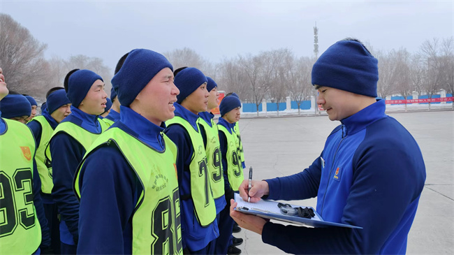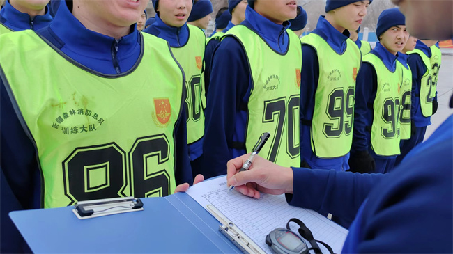 本网讯:(李涛 杨长红)“贡文鑫加油!冲起来还有20米,快!快!快!”近日,为全面掌握大队全体新消防员3000米跑能力水平,确保在下步森林消防队伍入职教育训练检查考评工作取得优异成绩,新疆消防总队新训大队组织开展3000米跑体能测试。