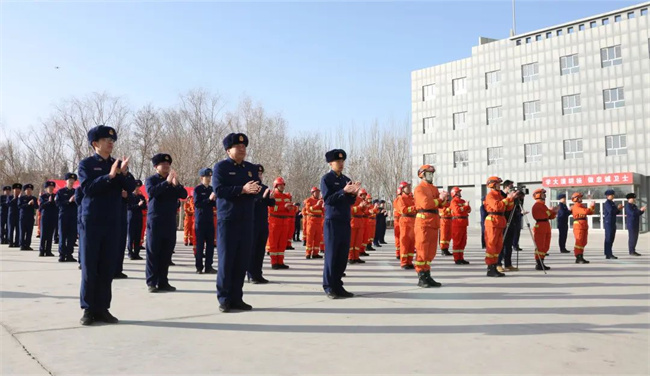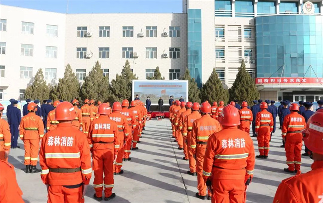 本网讯:(郑云睿)2月8日上午,新疆森林消防总队巴州支队隆重举行2023年度森林草原防灭火技能培训动员大会。巴州林业和草原局党组书记王银茂、新疆塔里木胡杨国家级自然保护区管理局局长白晓利及支队在家主要领导、全体参训人员共80人参加了仪式。