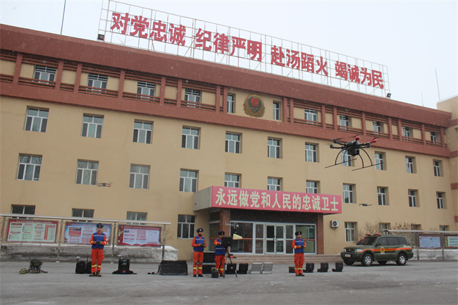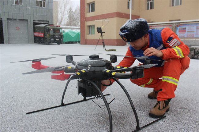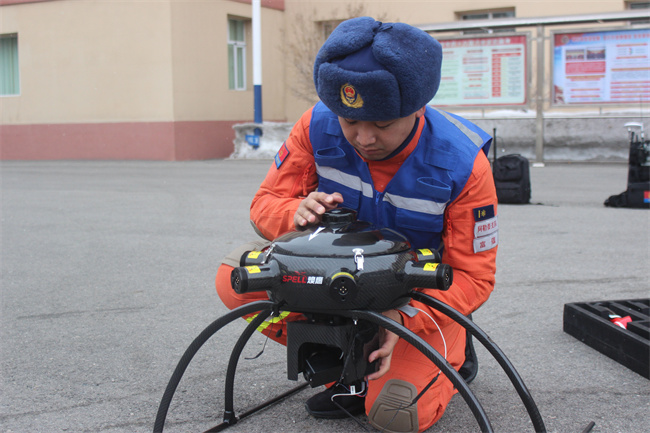 本网讯:(康冀)“测试完毕,准备起飞。”伴随着电机发出的嗡嗡声,一架KWT-X6L型六旋翼无人机冲天而起,机翼飞速旋转,掀起一股股气流将积雪像海浪一样向四周吹散,漫天飞雪在上升气流中跳动。近日,阿勒泰地区森林消防支队富蕴大队紧贴实战,开展极寒天气条件下应急通信保障训练。