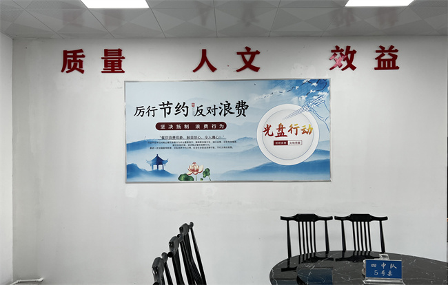 大力推进星级食堂达标创建,合理利用空间区域,设置家属来队用餐区、自助选餐区等特色功能区域,依托地方专业餐饮资源开展厨师人才培养,实行“内外融合”保障模式,形成集“整理、整顿、清扫、清洁、素养+安全”于一体的“5S+”食堂管理体系,既满足人性化服务要求,也满足指战员因公误餐“吃上热饭”的需求,指战员满意度大幅提升。大队对食堂不单单是伙食上的严管,对分餐区上、墙面上、洗手池上的温馨提示也是别具用心,通过张贴一幅幅宣传海报和开展“光盘行动”领奖活动,充分营造出了人人倡导节约、时时厉行节约的良好氛围。