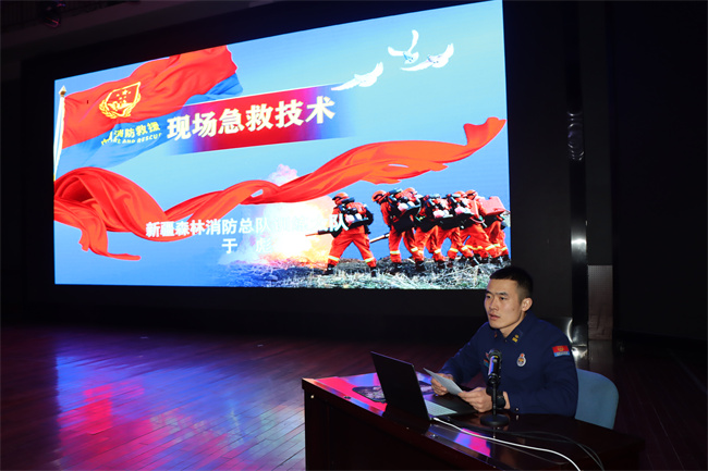 本网讯:(丹增晋美)“前方发现一名患者,确保周围环境安全,做好自身防护...”这是营区内进行现场急救训练的一处缩影。为满足新形势下应急救援任务需要,进一步提高指战员自救互救技能和现场急救水平,近日,新疆森林消防总队新训大队严密组织现场急救技术理论授课。