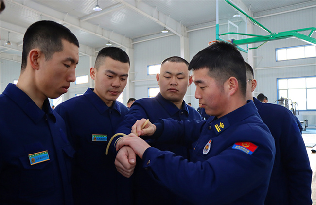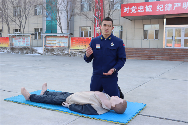 此次授课采取课堂讲解、情景模拟与实操练习相结合的方式进行,授课内容包括急救基本常识、心肺复苏、创伤救护等核心知识与技能以及常见急症、意外伤害、突发事件的处置方法等,教员为指战员讲解了现场救护新概念,在止血、包扎、骨折固定搬运及搬运等创伤救护四项技术的基础上,着重进行了心肺复苏的救护训练,并手把手指导全体指战员逐一进行联系,确保人人过关。