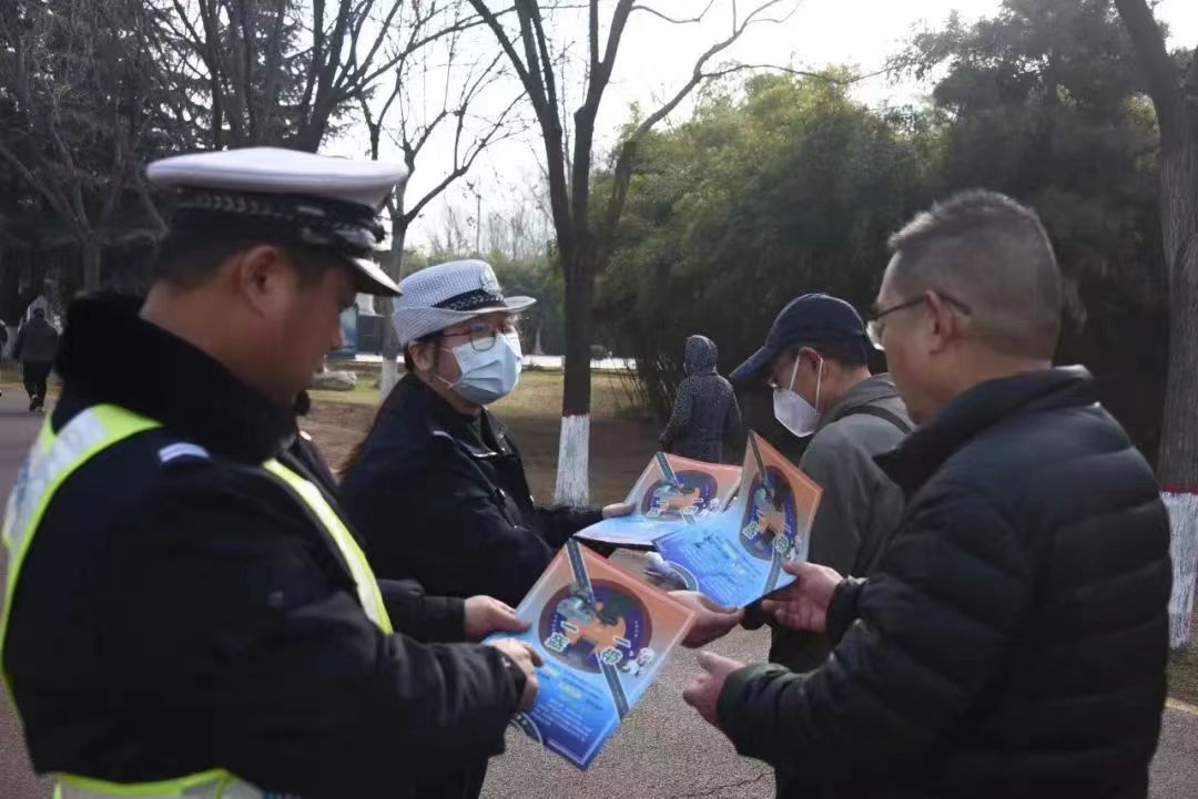 为提升广大市民文明交通及安全防范意识,2月20日,永济市公安局交通管理大队城市中队、宣传科民辅警,联合走进辖区公园,以市民聚集晨练为契机,开展交通安全普法教育传理念活动。
