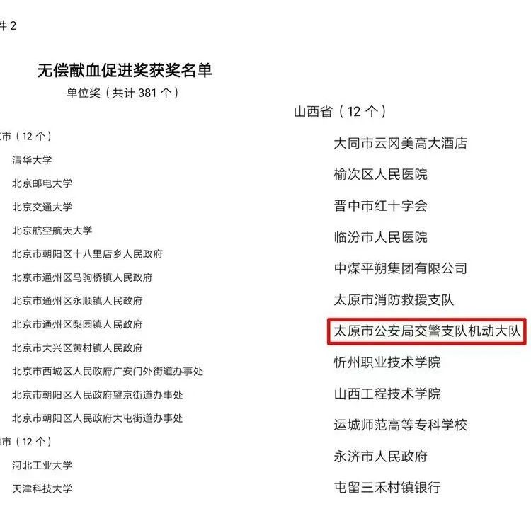 近日,国家卫生健康委员会公布了《关于表彰2020-2021年度全国无偿献血表彰奖励获奖者的决定》(国卫医急发【2023】3号),龙城铁骑被授予“全国无偿献血促进奖”(单位奖)。全国无偿献血促进奖由国家卫生健康委员会、中国红十字会总会、中央军委后勤保障部卫生局联合颁发,是国家对无偿献血工作做出突出贡献单位给予的最高奖项。