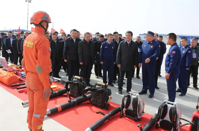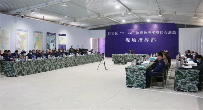 新疆森林消防总队项忠诚副总队长全程在演练指挥部参加观看演练,演练结束后参加自治区防震减灾和抗震救灾工作会议。