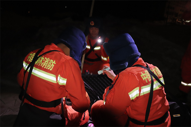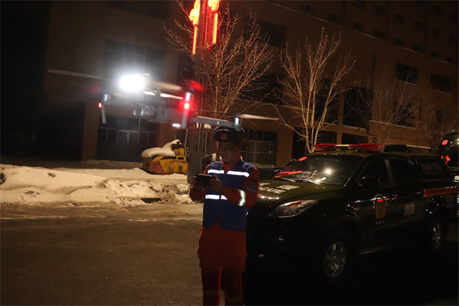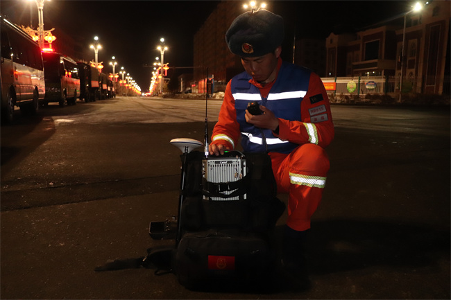 演练坚持从实战出发,根据灾害现场地理位置、气候环境等因素,合理选定场地设置营地,就狭小空间救援、仪器搜索、人工搜索等课目进行了现场操作演练,指挥员反应迅速、组织严密,通信人员协同配合,操作娴熟,克服照明不足、极寒天气的恶劣环境,第一时间与指挥中心完成通联。“迅速构建起通信网络可以显著缩短队伍的应急救援反应时间,及时将现场情况汇报给指挥中心,从而相应的制定下步应急救援计划与方案。”应急通信保障组组长李滨说道。