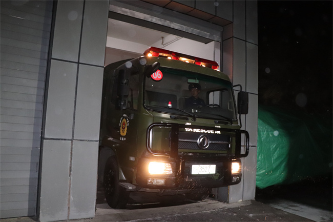 “大型灾害事故救援工作任务重,处置难度大,持续时间长,处置程序复杂,灾害现场情况瞬息万变,对队伍的决策部署和应急保障能力是一项极大的考验。”演练结束后,大队长肖坤对演练情况进行总结并提出三点要求:一是确保队伍在极寒等各类极端气候条件下快速出动和应急保障能力,做好安全工作;二是严格落实车辆防滑、装备防冻、人员御寒的目标要求,制定和完善方案;三是认真检查车辆和装备性能情况,及时维护保养,确保装备效能。