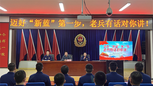 本网讯:(徐兵山 杨长红)“战友们,平凡造就伟大,只有打牢基础,才能向更高的山峰发起冲锋。每一次反复磨炼的细节,正是未来通向顶峰的基石,只有做好每一处细节,练好自身本领,才能锻炼出一支招之能战、战之必胜的队伍……”近日,新疆总队新训大队邀请原武警新疆森林总队伊犁支队伊宁大队班长李武来队开展迈好“新蓝”第一步老兵有话对你讲座谈会,大队张劲松教导员参加会议。