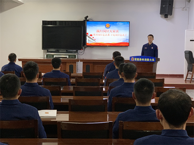 本网讯:(杨虎诚)为深入学习贯彻主题教育精神,引导全体消防救援人员牢记领袖训词,立足本职岗位,始终做到对党绝对忠诚。3月2日,阿勒泰地区森林消防支队富蕴大队认真组织全体消防救援人员学习主题教育配合活动围绕“我对岗位怎么看,立足岗位怎么干”展开激烈讨论。