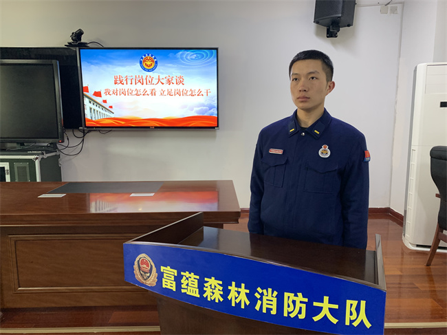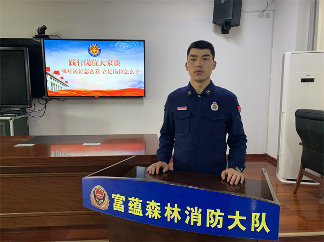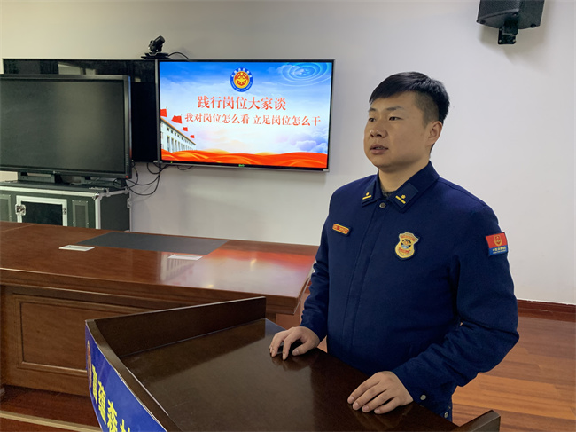 “岗位是一份责任,也是一份义务,在平凡的工作岗位上做到尽心尽责,把小事作为大事对待,管好用好中队的各类装备物资,为中队建设贡献自己的力量。”消防员牛国华激动地说道。