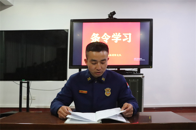 方法灵活,形式多样。大队以“条令学习月”活动为抓手,每日组织学习法规制度,观看规范性录像片,开展队列训练,持续推动“学法规、守法规、用法规”常态开展。每周进行队列会操、内务卫生检查评比,颁发流动红旗;每周对“条令学习月”活动稿件进行统计、评比;每日组织条令条例应知应会理论背记,积极备战总队队列会操和条令知识竞赛;每日安排队容风纪纠察员,全程加强监督纠治;不断提升消防救援人员条令意识和法纪观念。