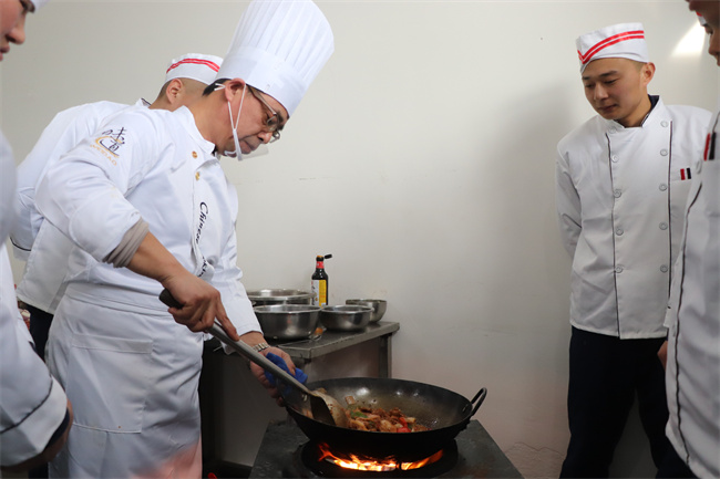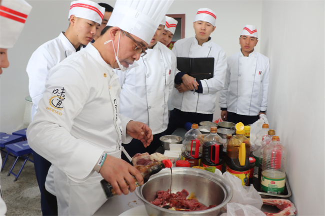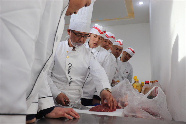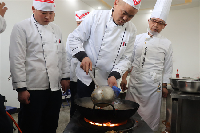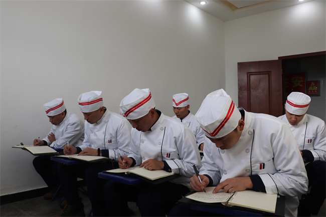培训过程中, 全体参训队员严守培训纪律,刻苦钻研厨艺,以饱满的热情投入到学习中,围绕教学内容进行交流讨论,利用课余时间加强刀工练习,苦练各种基本技艺,不断提高自身烹饪水平,通过训练逐步掌握了烹、炸、煎、炒、烩、炖等基本技法。