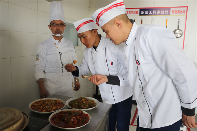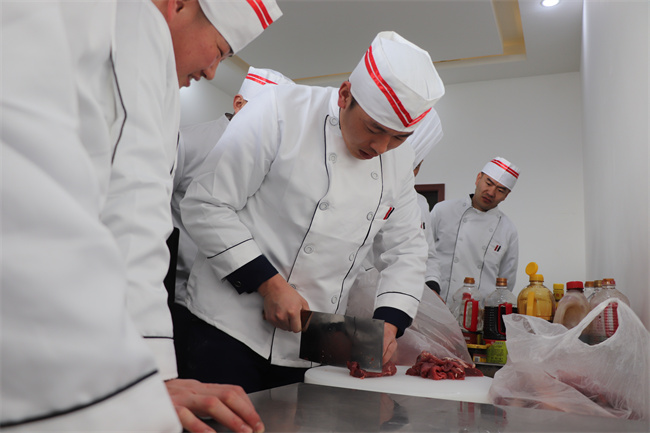 “做菜最重要的就是火候,不要炒得太老,炒菜一般差不多就可以了,太熟了菜就会变色,这样的菜不但不好看而且营养会全部流失。”培训将刀工与配菜、主副食品制作与加工、炒菜的调配作为主要内容,邀请新疆注册高级专业厨师进行授课辅导,紧密结合队伍实际,突出大锅菜、大众菜的烹炒调制,通过理论授课、实际操作、评比竞赛、考核验收等方法,掀起“学业务、练本领、强技能”热潮。
