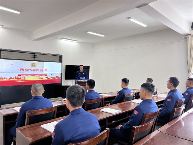 下步,大队将持续抓好全国“两会”精神与思想政治教育融合渗透,充分利用学习强国APP、微信公众号、抖音快手等新媒体平台和营区广播、宣传橱窗等载体,大力营造学习、宣传、贯彻全国“两会”精神的浓厚氛围,切实让会议精神入脑入心、指导实践。全体消防救援人员纷纷表示:一定要把全国“两会”精神焕发出的政治热情化为砺练精兵的实际行动,以昂扬的精神状态,求真务实的作风投入到各项工作、任务中去,用实际行动当好党和人民的“守夜人”。