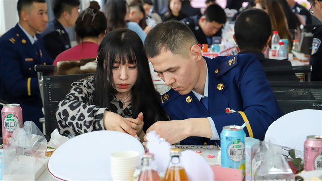 本网讯:(王恒辉)湛蓝天空如玉澄澈,暖风拂面心旷神怡。在这个生机盎然的季节里,一场青春聚会的联谊活动正在甜蜜上演。为进一步营造拴心留人环境,提升队伍凝聚力,切实解决大龄单身指战员婚恋难题。近日,阿勒泰地区森林消防支队积极与友邻单位联合举办以“同心共筑守边关,春暖花开等你来”为主题的单位联谊活动,来自森林消防、移民管理局和职业技术学院的50余名男女青年欢聚一堂,开启了一场甜蜜温馨的联谊活动。