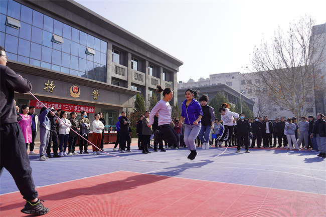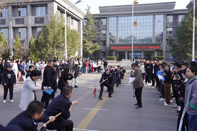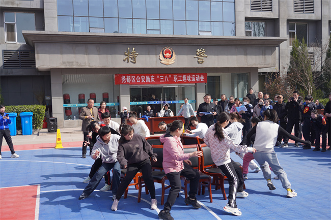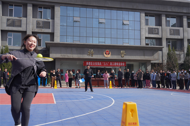 本网讯:(田哲斌)巾帼心向党,建功新时代。今天是第113个“三八”国际劳动妇女节,上午9时,尧都区公安局工会、妇委会在局机关院内举办了一场“庆三八”职工趣味运动会。区公安局党委副书记、政委杨玉波,区总工会党组书记、主席秦奇杰,区总工会女职工部部长李婧和区公安局领导班子、中层干部等参加活动,向全体女职工致以节日问候与热烈祝贺。