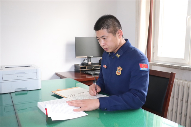 总队为提升基层干部骨干灭火战斗经验,选派指战员前往四川、内蒙古森林消防总队及逆行灭火实战轮训,2019年、2020年他主动申请参加轮训,轮训期间参与了四川西昌灭火战斗和内蒙古大兴安岭金河秀山林场特大深林火灾灭火战斗。轮训期间他积极学习各单位的灭火经验,与轮训所在单位进行交流,积攒大量的灭火作战实践理论,轮训归队后与单位指战员进行交流火场经验传授火场知识,并结合所见所学与中队干部骨干针对新疆独有地形、植被进行战法研讨。按照“讲摆研练”基本方法,不断提高自身灭火指挥和中队灭火作战本领。