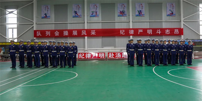 随着指挥员一声令下,三中队队列班迅速跑步带出,从清脆的脚步声、响亮的呼号声中正式拉开会操帷幕。参加会操的指战员在会操过程中精神饱满、姿态端正、动作准确有力、协调一致、整齐划一,力求每一个动作都紧紧符合标准。虽说还没上场的指战员是“观众”,但在队列席观摩同样能做到“站如松”。会操不仅仅是验收训练成果,也是检验作风的最佳时机,指战员们抬头挺胸展现出了最佳精神面貌。