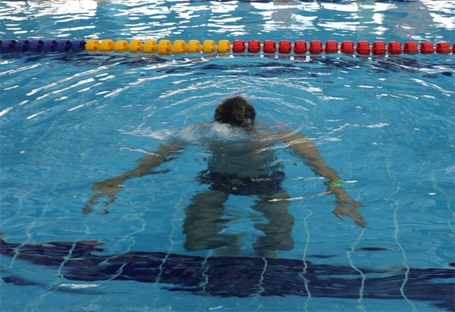 本网讯:(孟杰 许家亮)“吸气、吐气、吸气、吐气……注意腿上动作,脚掌向外分开,正直朝后蹬……”位于伊宁市中亚之门阳光游泳馆中,战训科助理员杨理升正在为勤务中队的指战员讲解有关蛙泳的动作要领。