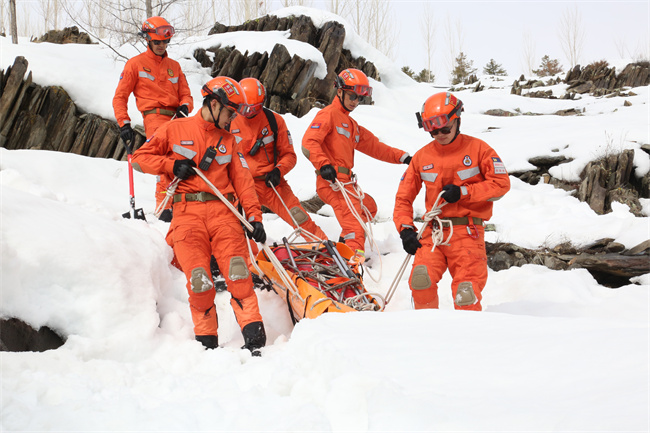 新疆阿勒泰地区地处祖国西部,气候严寒,降雪量大。今年降雪量更是超过往年降雪量三成,据资料统计,截止目前,共发生雪崩灾害100余次。为充分做好应对雪崩灾害,近期,阿勒泰地区森林消防支队同阿勒泰消防救援支队联合开展冰雪灾害实战拉动演练,演练在地区恰秀南苑后山举行。按照实战标准,全面磨合两支队伍联合处置救援能力,提高各级雪崩灾害救援应急处置冰雪救援灾联动能力。