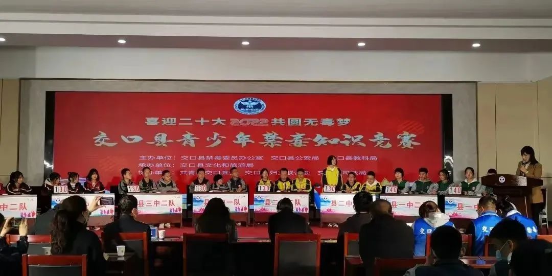 高光时刻的来临,背后是一天工作结束后无数深夜里默默的付出,所有的努力都会有回报。2022年10月14日,交口县禁毒办联合交口县公安局、交口县教科局、交口县文化和旅游局、共青团交口县委、交口县妇女联合会以及交口县司法局联合举办了“喜迎二十大 共圆无毒梦”交口县青少年禁赛知识竞赛,经过个人必答题、团体必答题、抢答题、风险题及附加题等环节的激烈角逐,分别从交口一中、交口二中、交口职中选出三名学生代表参加本次禁毒知识竞赛。