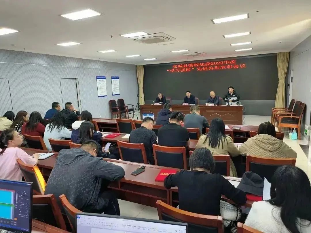 3月14日,交城县委政法委召开2022年度“学习强国”先进典型表彰交流会议。