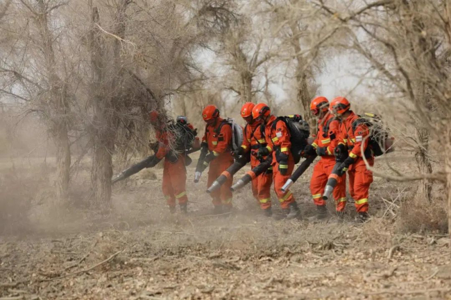 新疆阿克苏地区森林草原资源相对匮乏,主要由山区天然林、绿洲人工林和荒漠河谷胡杨林三大部分组成,防火灭火工作尤为重要。进入春季防火期,大队紧盯森林防火重点时段、重点部位、重点环节,大力提升防灭灭火能力建设,完善应急方案,备齐战备物资,开展防火演练,做到早部署、早防范、早准备,高标准、快节奏、大力度地推进防火灭火工作,确保重点林区防火安全。