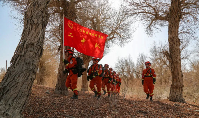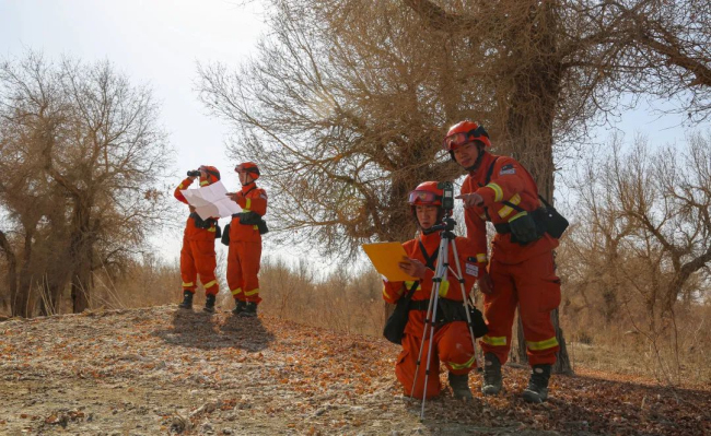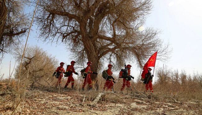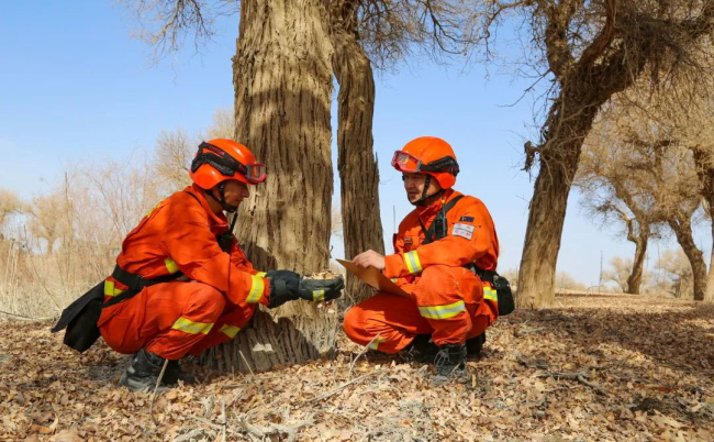 通过踏查发现罗布淖尔湿地公园与沙漠相结合气温回升较快,多数灌木表皮干燥,内部干枯,但是些许胡杨树已出现渐渐返青情况,林下可燃物以枯叶、枯枝、灌木和杂草为主,可燃物载量较大。