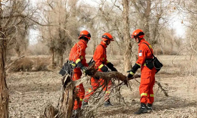 进入春季,林区生产生活的农牧民增多,防火工作异常严峻,四级消防士崔文志说,“胡杨树的树干很干燥,容易着火,一般有胡杨的地方就有一片红柳林,一着火就会连成一片,防火工作一定得格外仔细。”