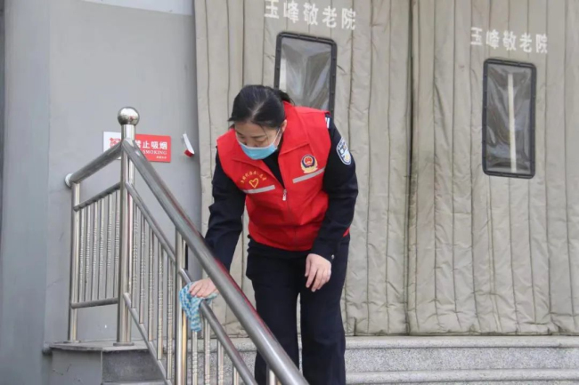 为深入贯彻落实党的二十大精神,持续推进洪洞县全国文明城市创建工作,弘扬中华民族尊老爱老传统美德,2023年3月22日,洪洞县公安局民警走进敬老院开展“警察蓝”守护“夕阳红”志愿服务活动。