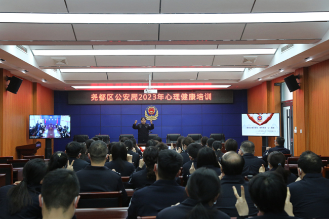 本网讯:(田哲斌)为进一步落实思想政治工作机制,缓解民辅警心理压力,落实爱警暖警措施。3月24日,尧都区公安局举办一场心理健康专题辅导讲座,心理教官常海珺作了主题为“提高心理灵活性,筑牢民警‘心’防线——以积极的心态,开启幸福人生”的专题讲座。各单位民辅警通过现场参会和视频会参加培训。