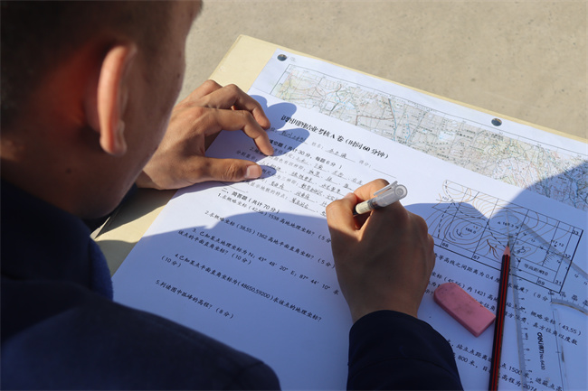 考核前,考官传达了考核相关要求、实施程序,明确了成绩评定标准,考核中,重点围绕地形图基本知识、坐标量算与标定、高程判读、方位角计算、距离量算等内容进行考核。“在课堂上,总以为很简单,识图用图就是几个数据按照公式进行换算就可以了,但在这次考核过程中,就暴露出了许多问题。下步我一定在实践中检验自身所学,确保在关键时刻不掉链子。”考核结束后新消防员郑世雄感叹道。