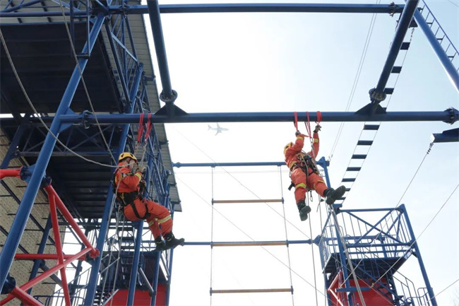 本网讯:(陈文杰)身处高空,逼到绝境,如何战胜心理和生理上的恐惧?在模拟的真实场景下,队员们如何完成实景训练?请看“蓝朋友”如何“绳”乎其技,决胜高空。