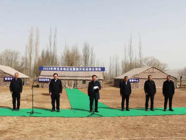 演练旨在全面检验地区各部门应急协同和消防救援力量快速反应、实战能力,通过演练检验预案、规范程序、磨合机制、锻炼队伍、提升能力,不断提高地震灾害的应急处置能力。接到上级命令后,3月28日,新疆森林消防总队巴州支队阿克苏大队出动28人、5台车,携带各类救援装备器材200余件套,以摩托化机动方式为生命挺进、向“灾区”驰援。