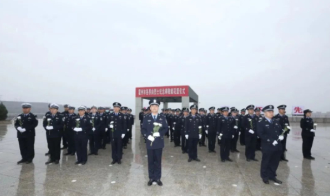 仪式现场,全体参加人员排着整齐的队列,怀着对人民英雄无比崇敬的心情,向英烈敬献花篮、脱帽致哀,依次上前敬献鲜花、鞠躬敬礼,并参观了烈士陵园展馆,深切缅怀为维护社会安定和人民平安幸福英勇牺牲的英烈。
