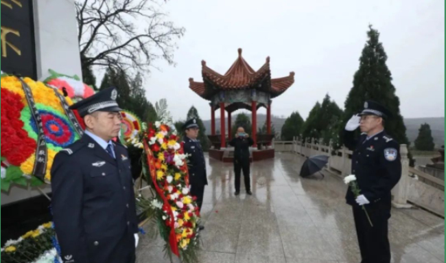 又是清明至,追思祭英灵。为认真贯彻落实习近平总书记关于弘扬英烈精神、传承红色基因的重要指示精神,深切缅怀革命英烈,弘扬公安民警维护国家安全和社会稳定的牺牲奉献精神,4月3日上午,霍州市公安局在南塔烈士陵园举行2023年清明祭奠公安英烈活动。副市长、公安局党委书记、局长张强强,部分班子成员以及民辅警代表共计150余名同志参加了祭奠。