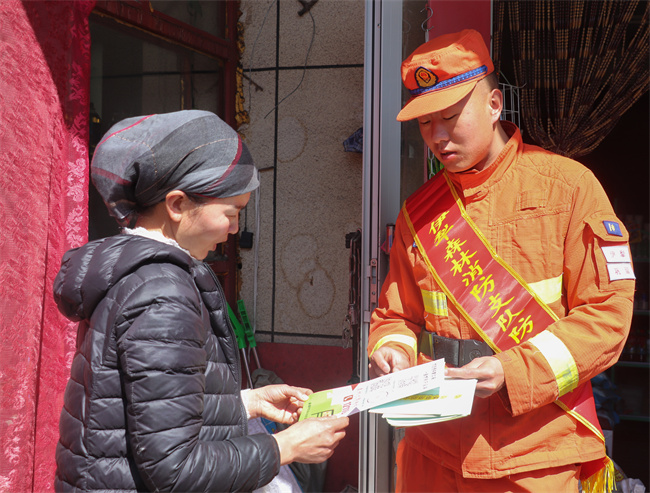 “大娘你好,我们是伊犁森林消防支队的消防员,你知道森林火灾的危害吗?……”巩留大队指战员采取上门入户、面对面发放森林防火宣传资料等方式,在库尔德宁景区进行入户式防火宣传,将森林防火常识手册、防火宣传单、宣传画册和宣传小礼品送到每一名村民手中,有效提高了广大群众森林防火意识,同时也为当前森林火灾防控工作提供了力量保障,促进了全民防火工作的有利开展,有效的降低了森林火灾的发生率。