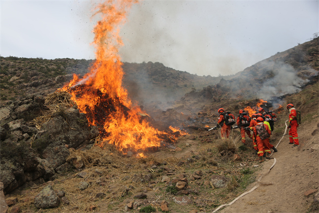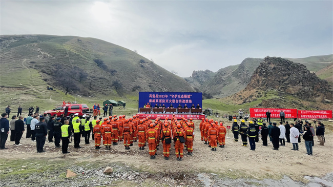 本网讯:(滕格斯)4月6日下午,巩留县2023年“守护生态蝶城”森林草原灭火联合实战演练在巩留县伊勒格代林区举行。巩留县森林消防大队、巩留县消防救援大队、天西局巩留分局、县应急管理局、县林业和草原局扑火队共计150余人以实兵、实地、实战的形式参与了此次演练。