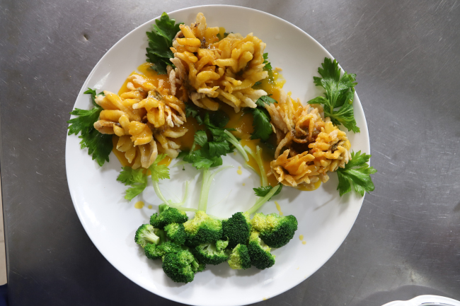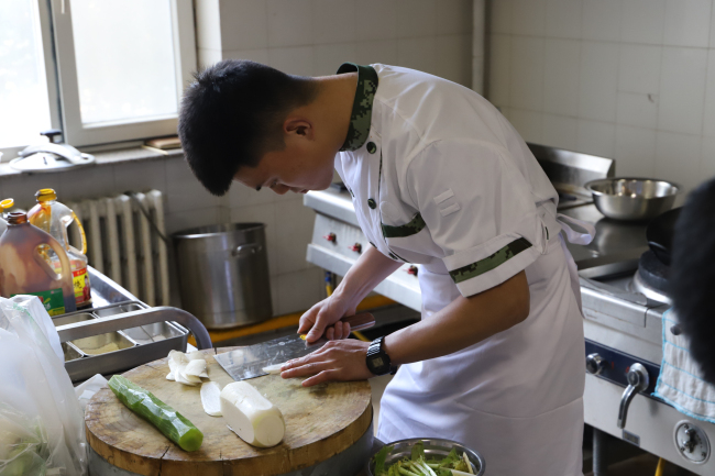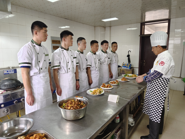 “确保指战员吃出营养、吃出健康、吃出战斗力,是我们作为一名炊事员最大的价值体现。要想成为一名合格的炊事员,不管是烹饪主食还是做菜都要扎实锤炼基本功。”参加此次培训的炊事员王鹏说道。授课结束后,各参训学员从刀工、摆盘和热菜烧制进行训练,纷纷摩拳擦掌、挽袖掌勺,松鼠桂鱼、红色鲤鱼、什疏拼盘、大盘鸡、辣子鸡和拔丝地瓜等成品相继出锅,外聘老师从菜品制作的色、香、味、熟等角度逐一认真点评,参训学员信心满满。