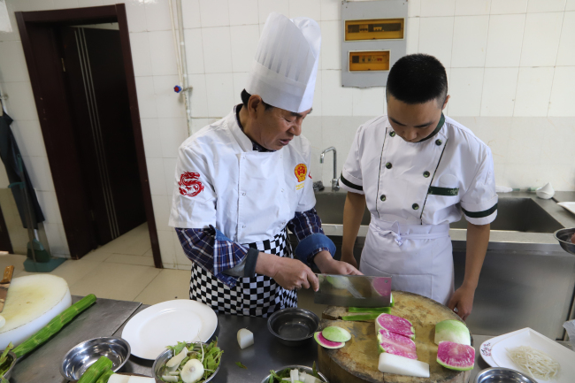 “肉与配菜的比例一定要均衡”“大盘鸡的要点就在于掌握火候和调料配比……”授课老师手把手的帮带,面对面的传授,采用理论灌输引导、边教边做、循序渐进、由简到繁的过程,着重对食材选用、调料选择搭配、火候捕捉、翻颠技巧、烹饪时间及面点制作等进行讲解,紧贴实际的专业讲授,让课堂气氛热烈。授课老师毫不保留,悉心传授每一个小技巧,培训学员珍惜时机,专心学习,一步一步跟着学,一刀一刀跟着练,以饱满的的精神状态、熟练的技能水平,全身心投入此次培训。