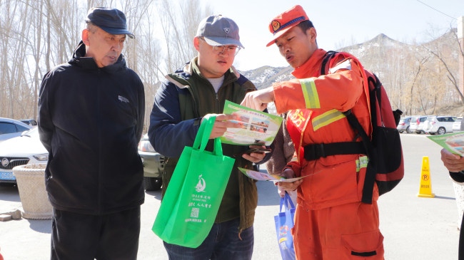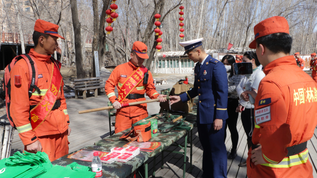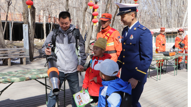 “当前天气回暖,天干物燥,林下可燃物较多,我们一定要严格遵守防火规定,不携带火源火种、易燃易爆物品”知识科普员朱科解说到。当前防火形势比较严峻,为充分发挥森林消防队伍应急救援主力军和国家队职能作用,有效保护重点林区、景区、自然保护区生态安全,4月5日,阿勒泰地区森林消防支队走进桦林公园,开展防火执勤、防火宣传、携装巡护等各项重点勤务,严格火源管控、排除火险隐患、进行科普宣教,以实际行动为地方解难、为人民服务,全力以赴做好森林防灭火工作。