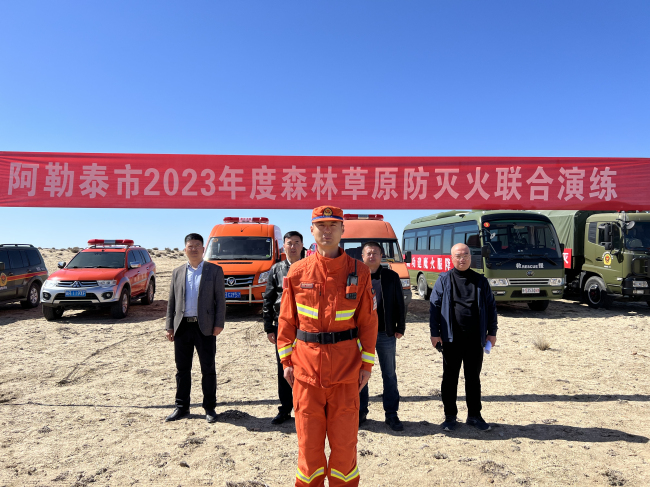本次防火演练采取不提前通知的方式,一切从实战出发,全程模拟森林火灾的发生,对火灾扑救中的应急响应、灭火力量集结、展开灭火行动和清理移交火场进行了一连贯演示。此次演练共出动阿勒泰地区森林消防支队、阿山分局国有林场森林消防专业队、阿勒泰市国有林场森林消防专业队等4支防火队伍,共计70余人,参加森林防火实战演练。